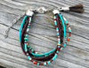 A tiny horse hair tassel accents Taos colored seed beads, leather cords and a single spiral of hand-braided horse hair. Adjustable from 6.5 to 9.5 inches with chain and lobster claw closure. Coordinates with N6-17 Taos Necklace and the ER117- Taos Bead Earrings.