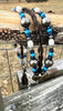 A single spiral of braided horse hair is encircled by Navajo pearls and blue beads, finished with a tassel of horse hair. Chain and lobster claw closure allows bracelet to adjust in size.